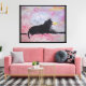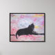 Impression de toile étirée avec mon oeuvre de chat noir dans la fenêtre.