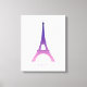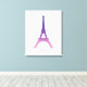 Ce design présente une tour Eiffel abstraite en violet et rose.
