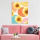 Cette peinture murale en toile colorée présente de l'art abstrait dans un style de blocs de couleur en bleu, rose, orange, jaune, avec tournesol.Une toile murale artistique parfaite pour votre salon.