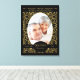 Des tourbillons audacieux de faux feuillage doré et un motif de cœur sur fond noir créent une façon élégante d'afficher la photo du couple pour leur 50e anniversaire de mariage, leur nom et la date pour la fête de l'anniversaire d'or ou comme cadeau au couple.