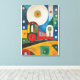 Une peinture fascinante et originale qui représente un train de style abstrait. Le tableau utilise de la peinture acrylique sur toile et crée un contraste entre l'arrière - plan foncé et les couleurs vives du train. Le train est composé de formes géométriques qui lui donnent un aspect dynamique et moderne. C'est une oeuvre d'art parfaite pour tous ceux qui aiment les trains, les couleurs et l'art abstrait.
