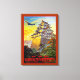 Vintage Japanese Air Transport air travel poster showing a propeller plan et a pagoda temple.