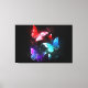Trois papillons lumineux, rouges, violets, verts, texturés, nocturnes sur arrière - plan noir lumineux.