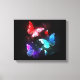 Trois papillons lumineux, rouges, violets, verts, texturés, nocturnes sur arrière - plan noir lumineux.