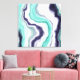 Toile Turquoise, Bleu foncé et Marbre blanc tourbillons