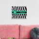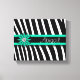 Fleur bleu turquoise avec losange graphique au centre, zone plaque noire et bleue pour vous de personnaliser votre nom et noir & blanc motif d'impression zèbre arrière - plan. Un cadeau féminin mignon pour une fille ou une femme à l'occasion de son anniversaire ou de son diplôme.