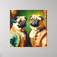 Design with two funny anthromorphic pugs in vintage costumes. The design imitates an oil portrait of the 18th century.