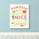 Venez dans l'esprit d'automne avec cette impression typographique avec l'expression "épices citrouilles et tout ce qui est bien, c'est ce dont l'automne est fait" avec des icônes de favoris d'automne comme les citrouilles, des marshmallows torréfiés, lattes, dinde, tourte, feuilles et glands.