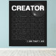 Cette conception de typographie présente le mot Créateur et la citation « Je suis celui que je suis. »