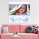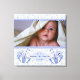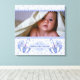 Cette impression de toile présente un thème bébé mignon avec un bleu Teddy Bear chevauchant dans un parapluie rayé sur un motif de pois bleu pastel. Ajoutez votre photo pour bébé pour remplacer l'image d'espace réservé pour bébé. Personnalisez le texte du nom et les informations sur la naissance. Le texte est entièrement personnalisable par vous. Pour ajuster la couleur de police, etc., cliquez sur le lien "customiser".