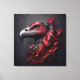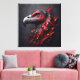 Une oeuvre d'art saisissante capturant la tête d'un condor majestueux comme un fossile en granit. Le style artistique abstrait, rouge sang et charbon de bois, crée une scène dramatique. Avec une perspective rapprochée et zoomée, la représentation évoque un sentiment d'émerveillement, montrant la beauté royale de ce magnifique oiseau glacé dans le temps.
