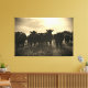 Cette toile enveloppée sépia a une image de vaches noires et blanches dans un pâturage au soleil brillant derrière.