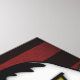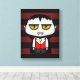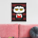 Vampire mignon de bébé de bande dessinée avec de grands plots réflectorisés jaunes, habillés dans un gilet rouge vif et un cap noir.