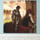 Edmund Blair Leighton était un peintre anglais de Regency et de sujets médiévaux., des scènes romantiques, souvent de chevalerie et des femmes en robe médiévale avec l'attrait populaire. Ce tableau est "Vanquished", représentant un chevalier en joute lors d'un tournoi.