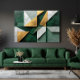 Composition abstraite sophistiquée avec des triangles superposés en vert émeraude, or métallisé et marbre blanc. La texture vieillie apporte de la profondeur et de l'élégance. Idéal pour la décoration intérieure moderne et les projets de design haut de gamme. Luxe et géométrie en parfaite harmonie visuelle.