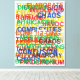 Mon point de vue sur ce que ressent la vie certains jours. J'ai passé environ un an à travailler comme graphiste interne pour une société de fabrication à Torrance, en Californie, où ils ont produit des machines de lettrage et le ruban auto-adhésif utilisé dans les machines. L'accès à beaucoup de ruban et aux machines, et un peu de temps libre, conduit à cette série de pièces construites à partir de la bande. Pour l'impression, j'ai nettoyé l'image pour rendre les couleurs plus solides, claires et définies. Ruban auto-adhésif sur affiche, application originale. 12 po x 18 po; c. 1987