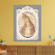 Vilnius Madonna dans la prière ... fine art Toile Imprimer "Mère de la miséricorde, Nous comptons sur votre protection." Madonna in Prayer fine art print, Our Lady of the Gate of Dawn (lituanien : Aušros Vartis Dievo Motina, polonais : Matka Boska Ostrobramska, biélorusse : М ц Б а і ж de de de de de de de de de de de de de de de de de de de de de de de de de de de de de de de de de de de de de de de de de de de de de de de de de ) est l'icône chrétienne de premier plan de la Sainte Vierge Marie vénérée par les fidèles dans la Chapelle de la Porte de l'Aube à Vilnius, Lituanie. Le tableau était historiquement exposé au-dessus de la porte de la ville de Vilnius ; les portes de la ville de l'époque contenaient souvent des artéfacts religieux destinés à empêcher les attaques et à bénir les voyageurs de passage. Le tableau est dans le style de la Renaissance du Nord et a été achevé très probablement vers 1630. La Vierge Marie est représentée sans le bébé Jésus. L'oeuvre est vite devenue connue comme miraculeuse et a inspiré une suite. Une chapelle dédiée a été construite en 1671 par les Carmélites discalées. En même temps, empruntant peut-être à la tradition orthodoxe orientale, le tableau était recouvert d'une riza coûteuse et élaborée en argent et en or, laissant seulement le visage et les mains visibles.