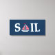 Sail text illustration with sailing boat decoration on dark blue background. C'est possible to change the background color and to add different one to the design with your choice.