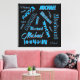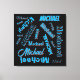 Votre nom motif monogramme bleu rouge noir couleur. Nom personnalisé personnalisable en bleu avec ombre de couleur rouge sur un arrière - plan de couleur noire.