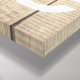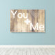 Toile scandinave moderne avec planches en bois clair recouvertes de fines flèches blanches et les mots "You + Me".
