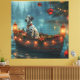 Mettez les voiles dans la magie de la saison des fêtes avec cette illustration magnifiquement détaillée, mettant en vedette un chien fier assis dans un bateau décoré de manière festive, glissant sur un lac de Noël serein. Les lumières scintillantes des pins voisins se reflètent dans l'eau, jetant une lueur chaude et festive qui renforce l'ambiance cosy. Des ornements pendent des côtés du bateau, tandis que des lanternes lumineuses éclairent le chemin, créant une scène qui capture l'essence même de la chaleur et de la joie de Noël. Cette œuvre d'art nostalgique apporte une touche de magie des fêtes à n'importe quel espace, parfaite pour ceux qui chérissent l'esprit de la saison.