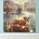 Mettez les voiles dans la magie de la saison des fêtes avec cette illustration magnifiquement détaillée, mettant en vedette un chien fier assis dans un bateau décoré de manière festive, glissant sur un lac de Noël serein. Les lumières scintillantes des pins voisins se reflètent dans l'eau, jetant une lueur chaude et festive qui renforce l'ambiance cosy. Des ornements pendent des côtés du bateau, tandis que des lanternes lumineuses éclairent le chemin, créant une scène qui capture l'essence même de la chaleur et de la joie de Noël. Cette œuvre d'art nostalgique apporte une touche de magie des fêtes à n'importe quel espace, parfaite pour ceux qui chérissent l'esprit de la saison.