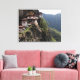 Paro Taktsang (aussi connu sous le nom de Nest du Tigre), Bhutan Paro Taktsang est le nom populaire du monastère Taktsang Palphug (aussi connu sous le nom de Nest du Tigre), un site sacré et complexe de temples bouddhistes de l'Himalaya, situé à flanc de falaise de la haute vallée du Paro, au Bhoutan. Un temple a été construit pour la première fois en 1692, autour de la grotte Taktsang Senge Samdup où Guru Padmasambhava aurait médité pendant trois mois au VIIIe siècle. On attribue à Padmasambhava l'introduction du bouddhisme au Bhoutan et est la divinité tutélaire du pays. Situé à 10 kilomètres au nord de Paro, le monastère est accroché sur une falaise escarpée à 3 120 mètres (10 240 pieds), au-dessus de la vallée du Paro, sur le côté droit du Paro Chu, à environ 900 mètres. Les pentes rocheuses sont très escarpées (presque verticales) et les bâtiments du monastère sont construits sur la paroi rocheuse.