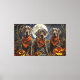 Libérez l'esprit effrayant avec ce design effrayant d'Halloween représentant une meute de chiens sous un ciel sombre éclairé par la lune, entourés de chauves-souris volantes et de citrouilles lumineuses. Parfait pour ceux qui aiment une touche de divertissement effrayant avec leurs amis à fourrure !