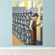 This funny WPA‑inspired canvas print captures a bittersweet moment in the modern American workforce: an elderly worker clocking in for the very last time while a row of android AI labourers — all wearing cowboy hats — stand ready to take over his shift. Rendered in the bold shapes, warm tones, and iconic layout of 1930s WPA national‑park posters, the artwork blends vintage Americana with a contemporary commentary on automation and disappearing livelihoods.