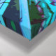 Je travaille depuis un bon moment avec une photo numériquement manipulée d'un plante de yucca mort, en la transformant en un certain nombre de designs numériques. Celui-ci est assez dynamique dans les couleurs turquoise, magenta, bleue et verte.