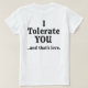 The image contains the text "I Tolerate You...and that’s love." in a straightforward, black font on a white background. The message is humorous and sarcastic, playing on the idea that even tolerance in a relationship can be seen as a form of love. It reflects a lighthearted take on relationships and compatibility.