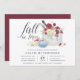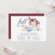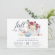 D'élégantes invitations rustiques pour les douches nuptiales d'automne ou d'automne sont ornées de citrouilles d'aquarelle blanche ornés de fleurs bordeaux, de roses jaunes et de plumes de saumons. "Fall in love" apparaît à côté dans le script de calligraphie chic lettering. Personnalisez avec votre douche nuptiale et les détails du registre sous le riche lettrage bleu marine.