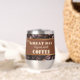 Bonnet isolé avec vos citations sur mesure (amusantes ou autres) sur un brun chocolat avec de l'or rose et des grains de café. Un grand cadeau personnalisé pour un amateur de café.