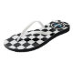 Ajoutez à damiers plaisir à votre collection de chaussures d'été avec ces tongs en noir et blanc à damiers personnalisées ! Dotés d'un design plaid à dames et customisés de votre nom et de votre initiale, ces sandales monochromatiques classiques sont parfaites pour toutes les occasions de la vie sur la plage. La motif de damier ajoute une touche rétro à ces chaussures d'été élégantes.