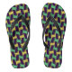 Des tongs violets et verts attrayants avec des motifs géométriques d'inspiration africaine, idéales pour des sorties à la plage.