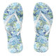 Les tongs de ces femmes ont un motif d'aquarelle bleu hydrangée.