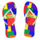 Ces tongs colorés présentent un design de courtepointe en patchwork dans les couleurs arc-en-ciel avec un look texturé. Personnalisez ou supprimez facilement le texte.