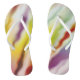 Des tongs avec un motif à vagues peint d'art moderne aux couleurs vives.