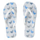 Illustrations modernes de baleines dans les tons bleus sur tongs bleu pastel.