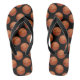 Feuilles à tongs conçues avec des boules de panier orange sur un arrière - plan noir.