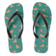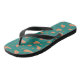 Cette tongs présente des illustrations de capybaras flottant dans l'eau. Ces capybara ludiques sont entrecoupés de petites oranges. L'arrière - plan turquoise vient compléter les tons marron, créant une esthétique fantaisiste et légère.