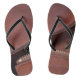 La conception de ces tongs a été inspirée par un riche cuir brun et une fermeture éclair en laiton dézippée, avec l'apparence d'un cuir fin avec passepoil et couture. Certainement un design unisexe.