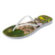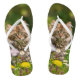 Un jeune chaton brun, maine Coon, assis curieusement dans un pré fleuri au printemps. Photo d'un chaton coonie de Katho Menden. Ces tongs sont une idée cadeau pour les amoureux de les chats.