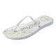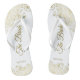 Dansez la nuit avec ces belles tongs mariages. Conçues pour la mariée, elles présentent un design simple mais élégant avec des écritures de couleur or sur un arrière - plan blanc et des boucles et tourbillons en dentelle dorée fantaisie. Belle façon de rester chic et approprié tout en donnant à vos pieds une pause après une longue journée.
