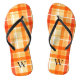 élégant monogramme tartan plaid jaune orange flip flops, monogramme tartan plaid personnalisé flip flops.