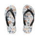 Une aquarelle fraîche colorée tongs d'été avec un motif de coquillages, de corail et d'étoiles de mer, dans des teintes bleues et oranges audacieuses.