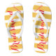 Font rouge Pinkish Flame Scarlet et Motif à rayures jaunes et blanches Misted - Changez Misted Yellow et rose rougeâtre en n'importe quelle couleur en cliquant sur personnaliser. En plus, dites ce que vous voulez ! Rien du tout ! Faites-en un de ces flip flops qui ont VOTRE message sur eux. Parlez de la plage !
