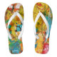 Un collage floral coloré et éclatant réalisé en acrylique s'est transformé en tongs. Cette belle paire de chaussures de femme de plage ou de piscine ajoutera de la couleur et une touche de féminité à toute tenue de vacances décontractée. N'oubliez pas de consulter la collection complète des flops de films créés à partir d'art par MyOtherSide.