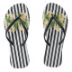 Tongs Fleurs jaunes sur rayures noir et blanc