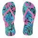 Tongs Fleurs tropicales exotiques de rose chaud et bleu
